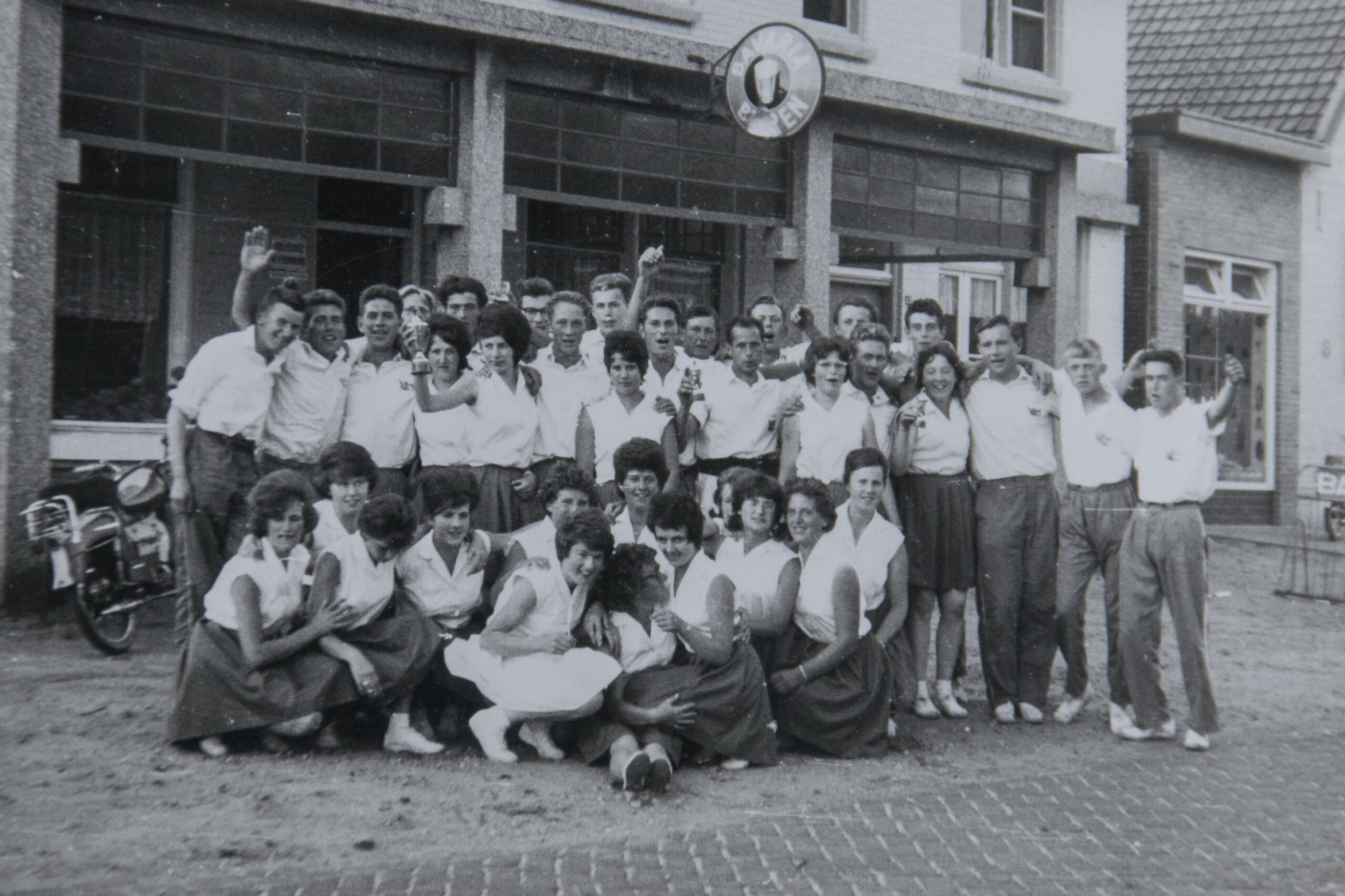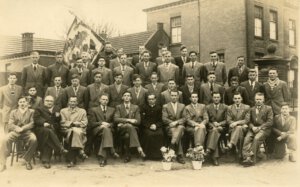 | Vlnr.: onder: Sjef Gijsbers, meester Schreurs (landbouwschool Deurne), Jan v. Leeuwen, Albert vd Heijden, Richard Derks, kapelaan Smits, Frans Berkers, Frans vd Vranden, Jan vd Zanden, Mies Kuunders, Ties Swinkels, Nico v Leeuwen 2e rij: Piet Berkers, Marinus Aldenzee, Karel de Groot, Driek Gijsbers, Harrie Aarts, Harrie Gijsbers, Jan v Dinther, Nico v Leeuwen, Piet Munsters, Jan Gijsbers, Mies v Ooij, Jan Seijkens, Mart vd Zanden (Hzn), Jan v Ooij. Rij 3 en 4: Jan vd Zanden (Lzn), Henk Munsters, Piet Meulendijks, Jan Manders, Harrie Aldenzee, Harrie Bennenbroek, Jan vd Zanden (Hzn), Tinus vd Zanden, Marinus Evers, Jan Bennenbroek, Jo vd Zanden, Harrie Manders, Wim v Rixtel, Jan Cuppen, Driek Bennenbroek, Jan Meulendijks |